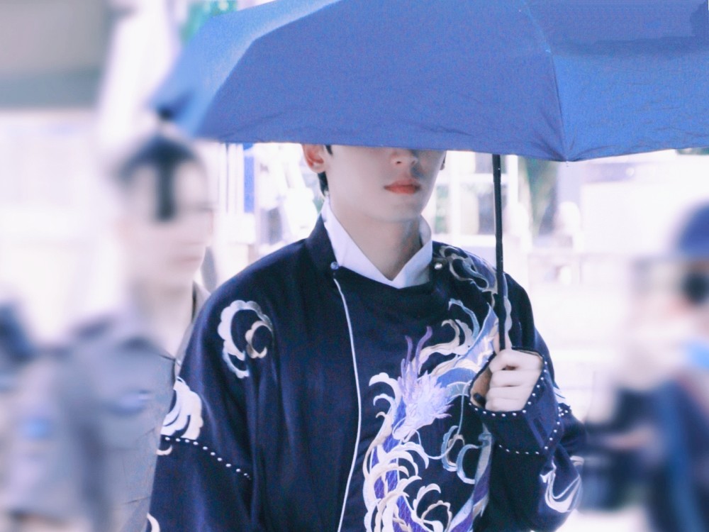 如图所示,录制综艺结束的张哲瀚,没有上平常的通勤车。